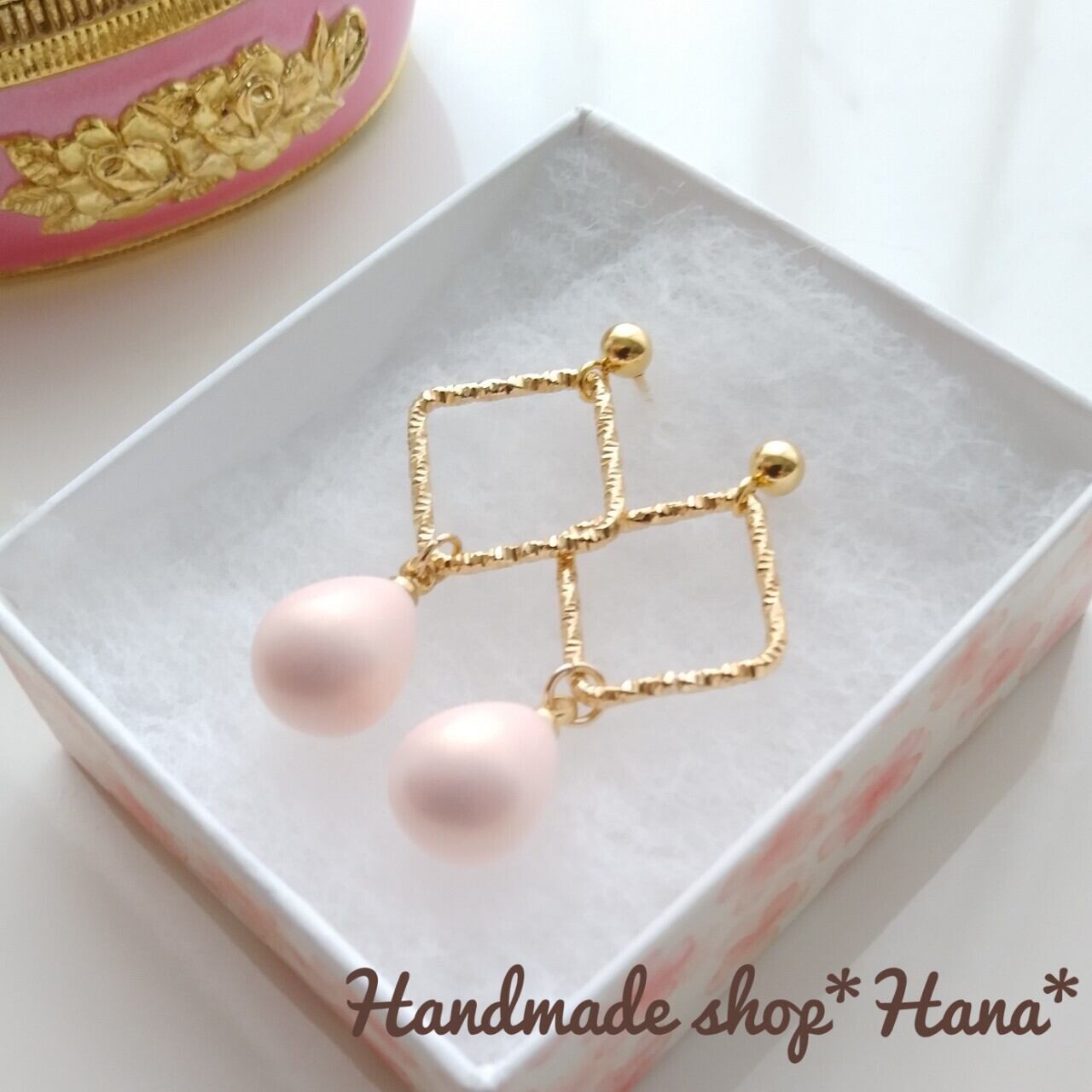 スタイリッシュなスクエアのアンティークパーツとかわいらしいパールのしずくチャームを組み合わせて『大人かわいい!』イメージで作成致しました。ファッションに取り入れていただくと