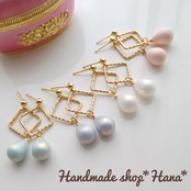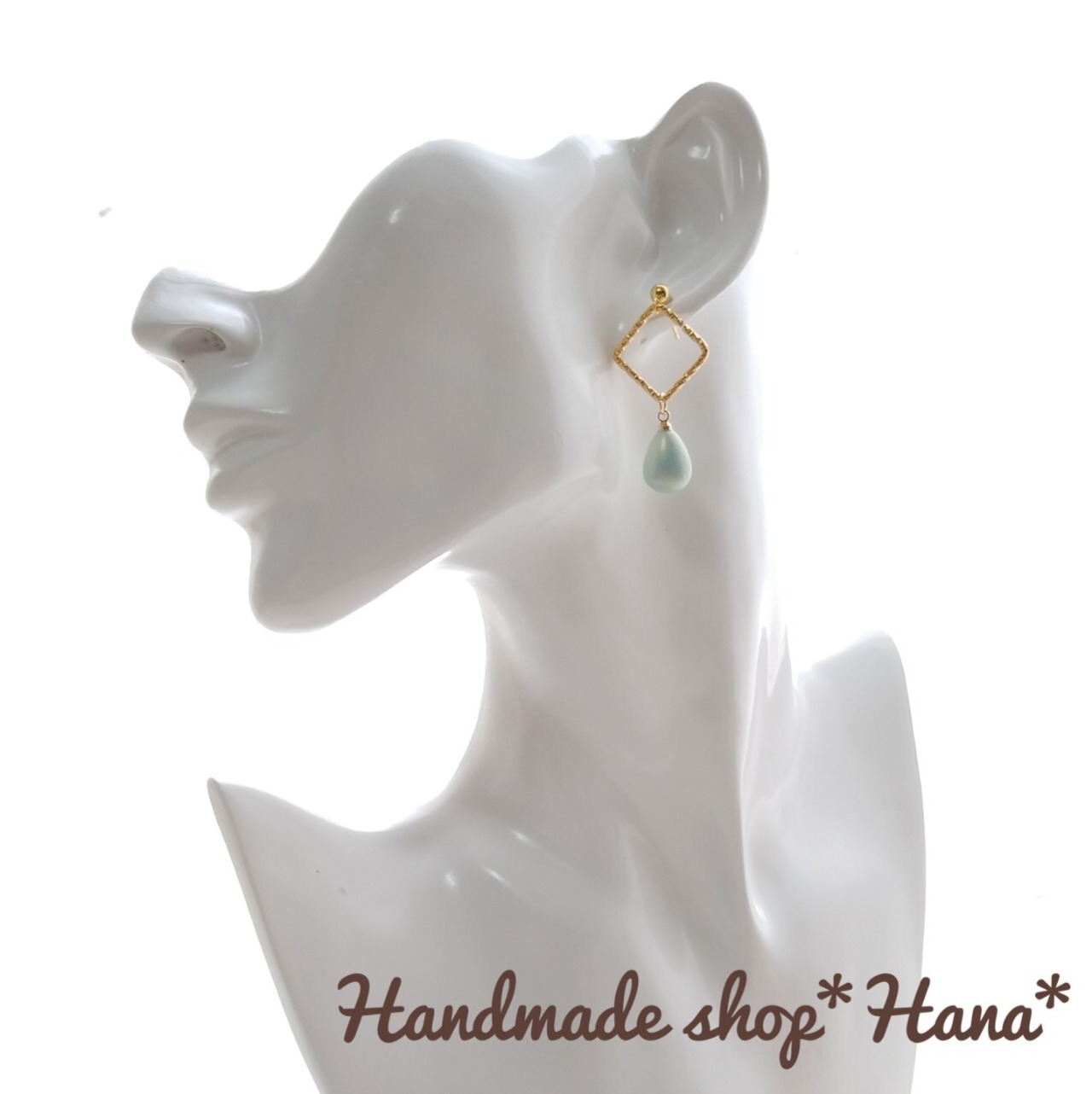 スタイリッシュなスクエアのアンティークパーツとかわいらしいパールのしずくチャームを組み合わせて『大人かわいい!』イメージで作成致しました。ファッションに取り入れていただくと
