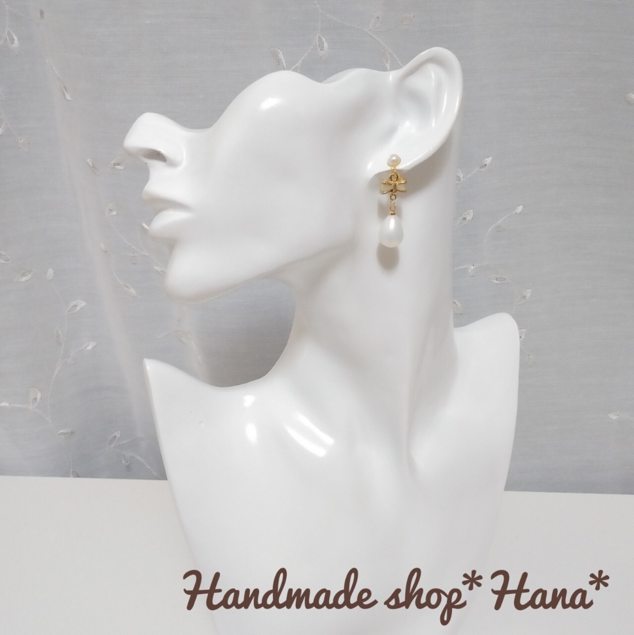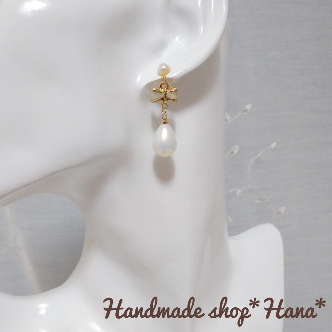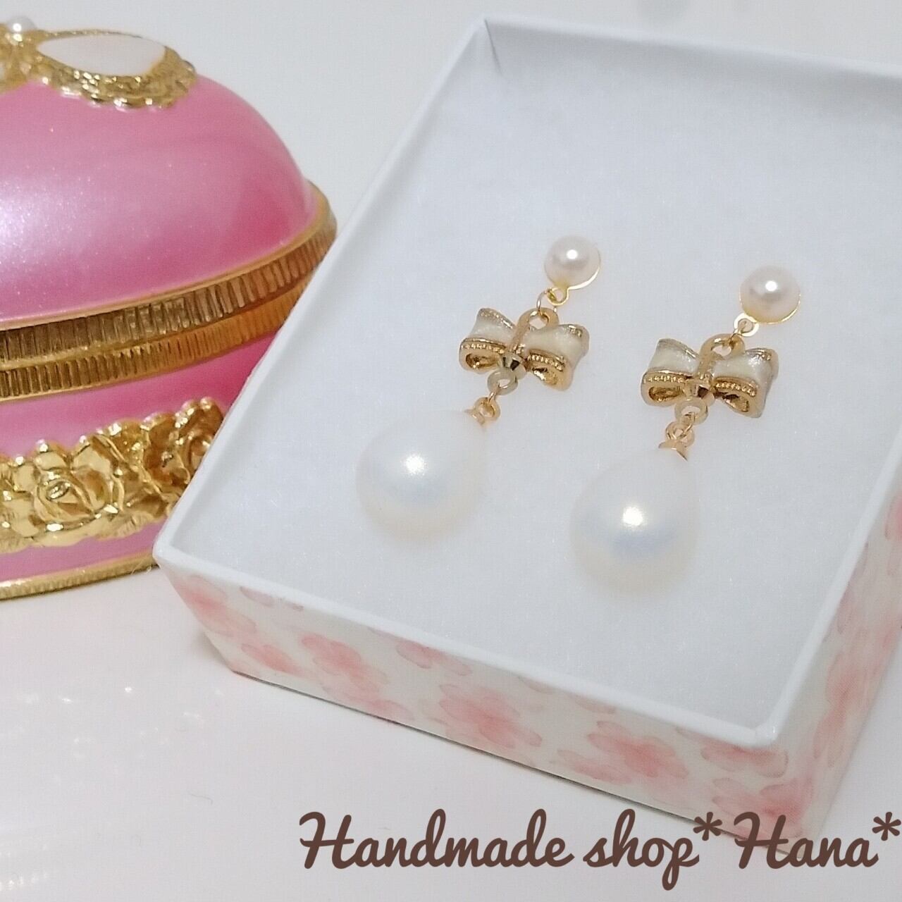 人魚の涙を想像したら、きっとパールのしずくのような美しい涙なんだろうなと思いこのピアスができあがりました!パステルカラーのしずくとリボンのとてもかわいいピアスです。