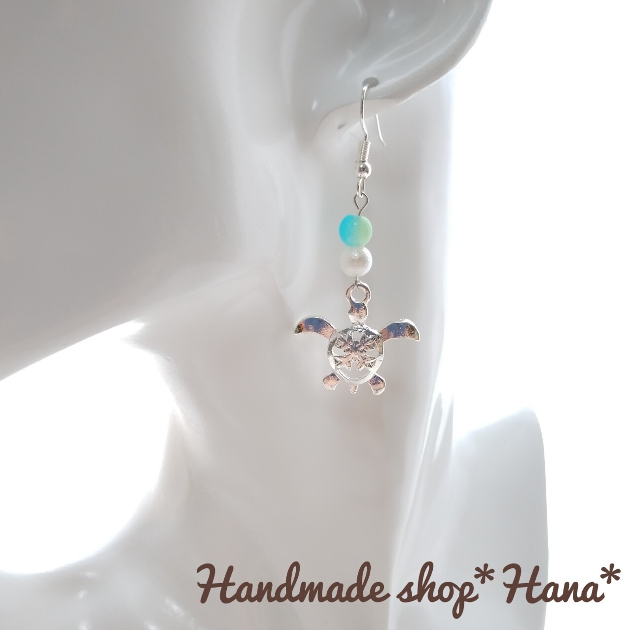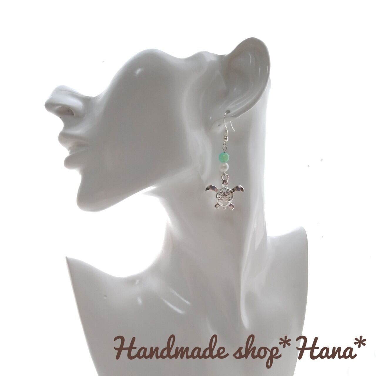ハワイの海をイメージして制作しました。涼しげでかわいいウミガメのチャームが夏を感じさせてくれます♪ハワイがお好きな方にぴったりです!
