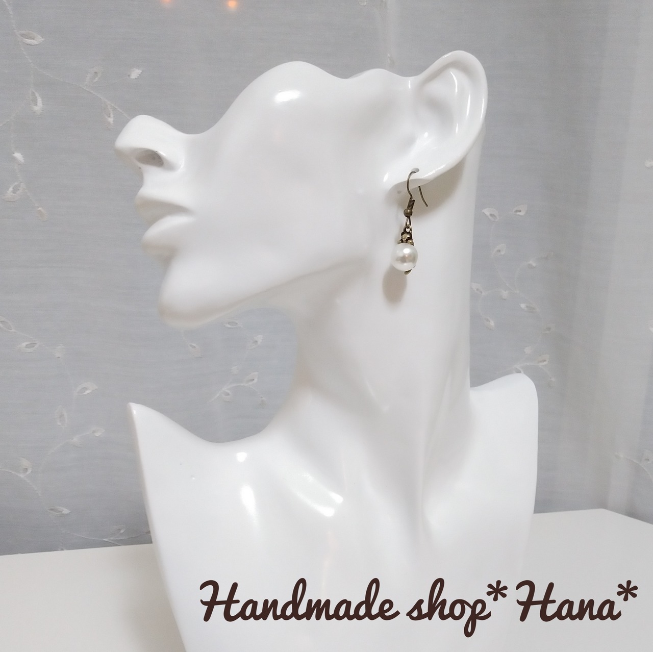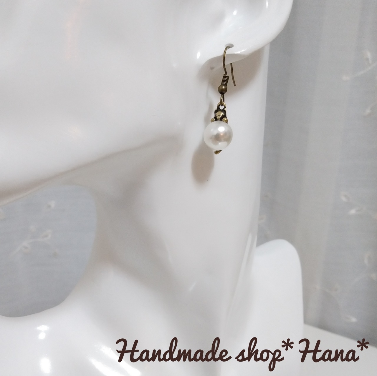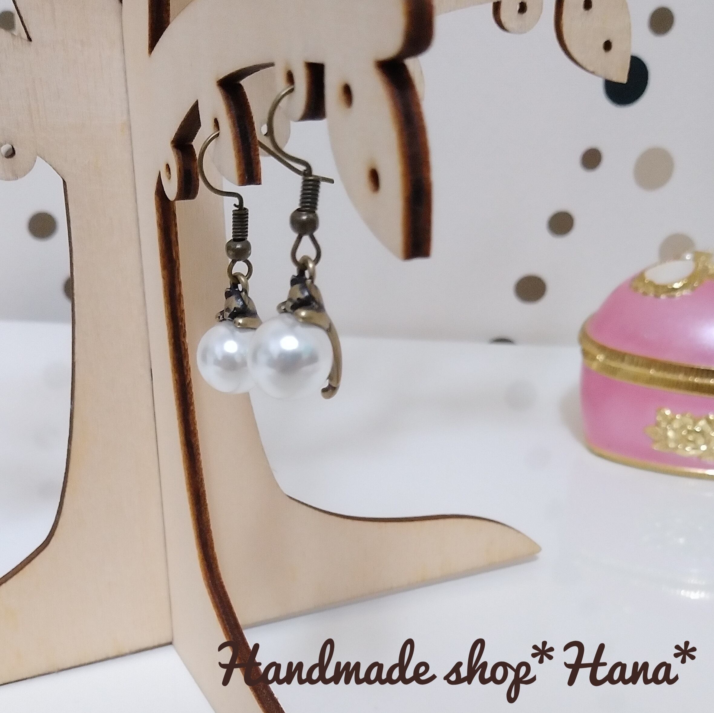 とってもかわいいねこちゃんがパールにぶら下がってるアンティークピアスです。シンプルなのでファッションを選ばずお使い頂けます♡