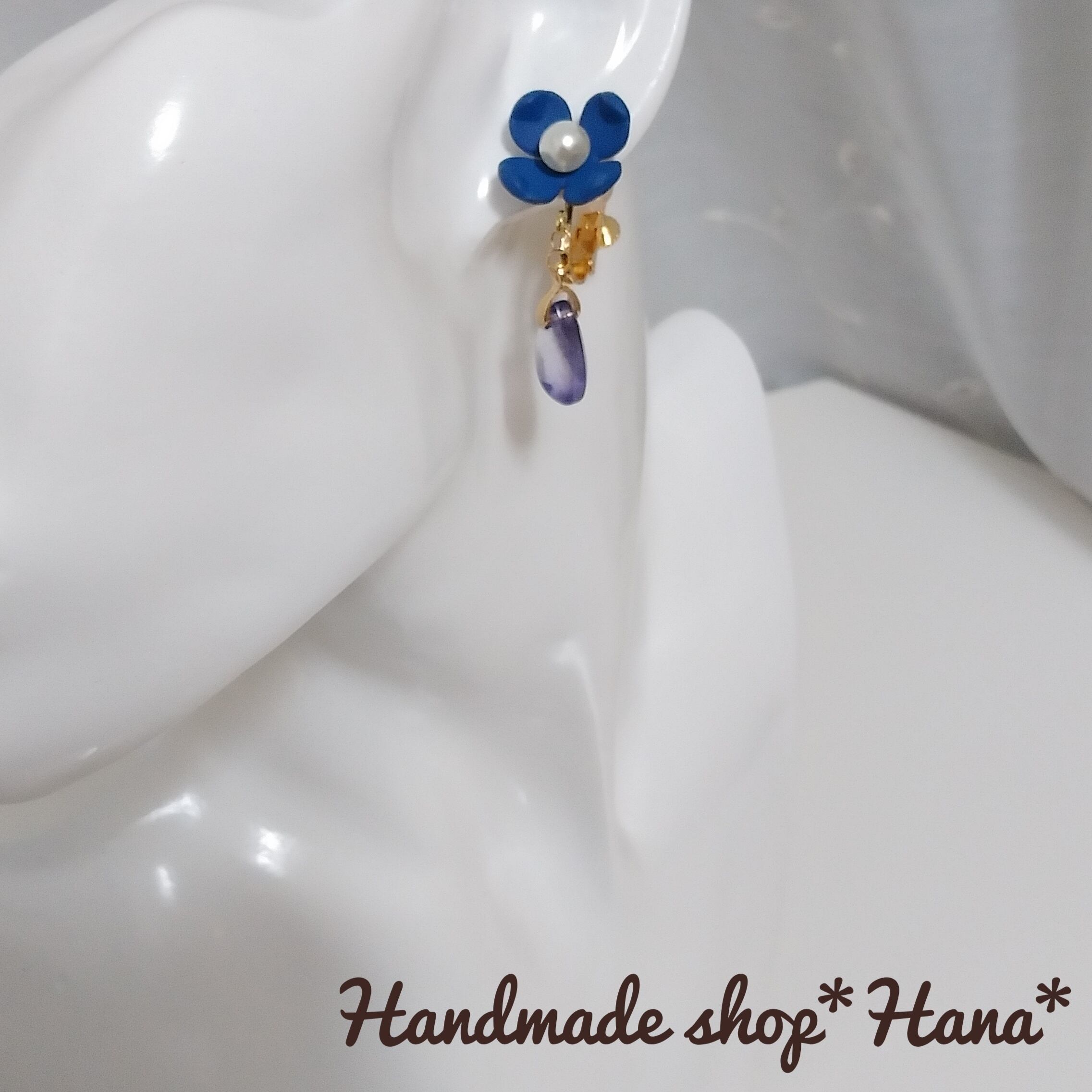 ガラスのしずくが本当の滴のようでとてもキレイなイヤリングです♪(材料の生産が終了してしまったため再販なしです!)