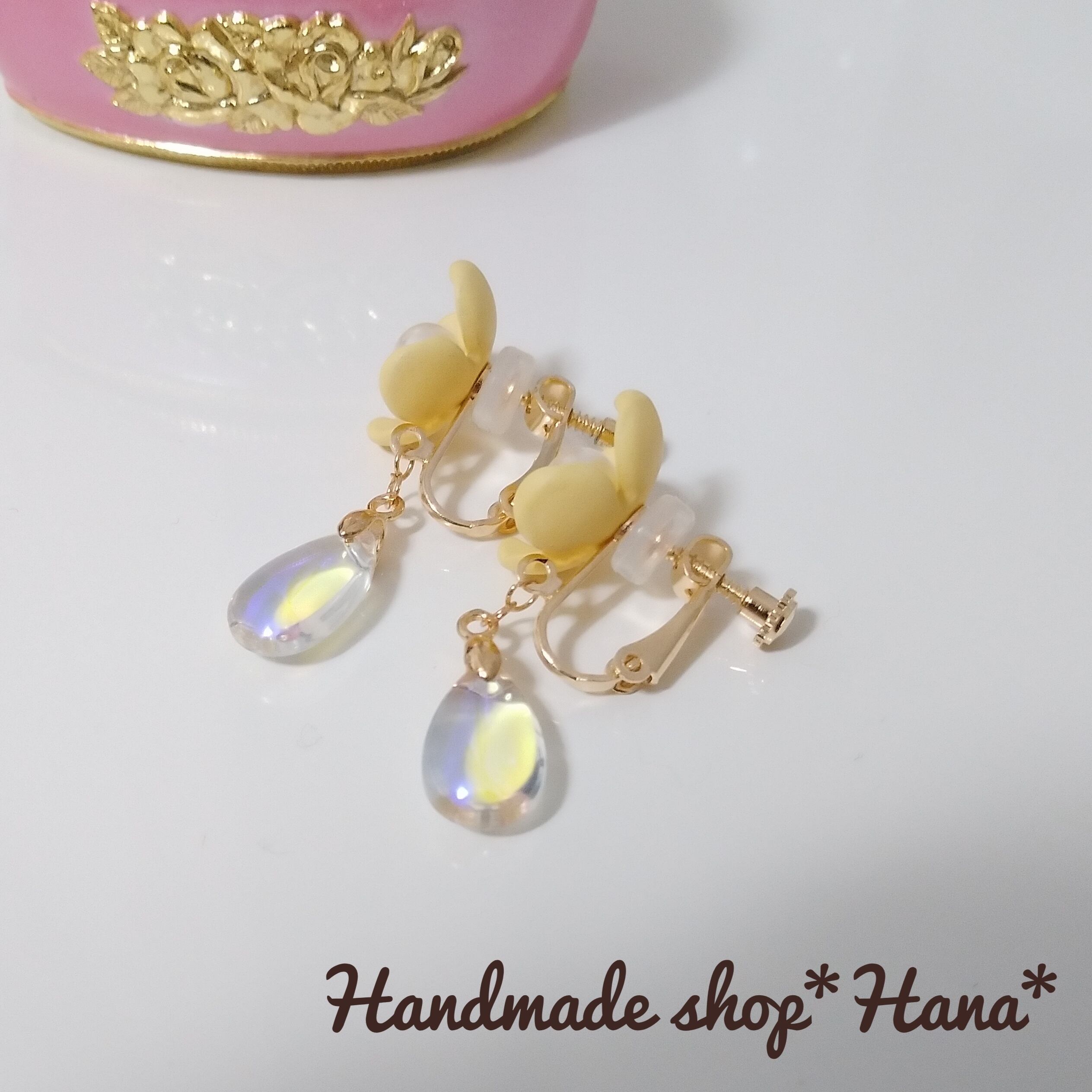 ガラスのしずくが本当の滴のようでとてもキレイなイヤリングです♪(材料の生産が終了してしまったため再販なしです!)