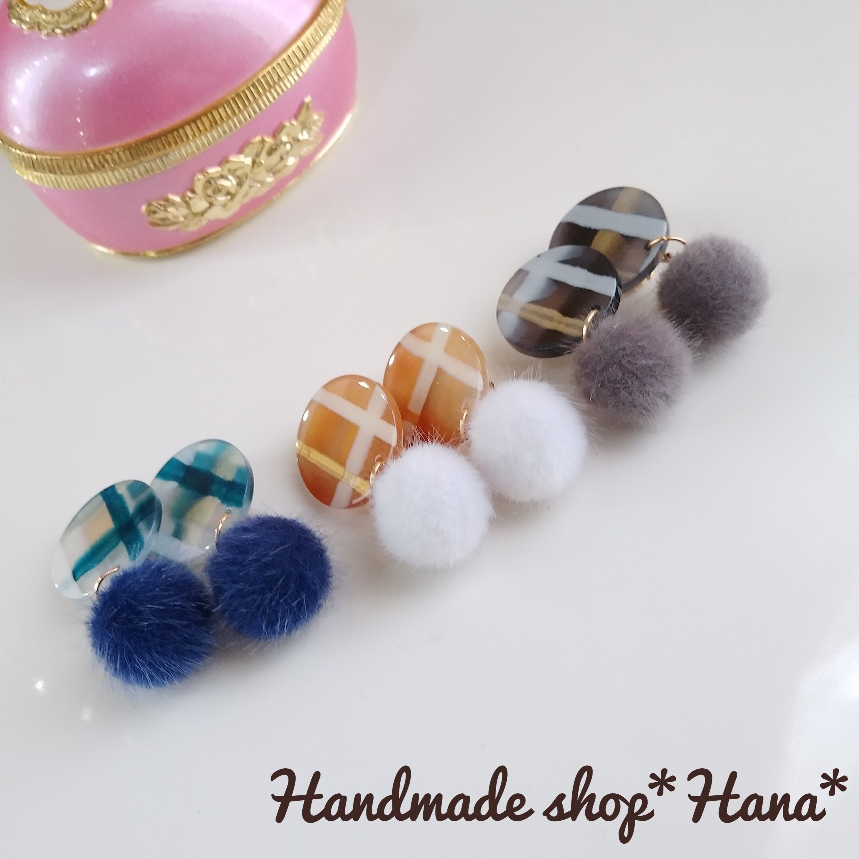 チェック柄のべっ甲とフェイクファーで可愛らしい秋のはじまりを予感させるイヤリングに仕上がりました♡秋ファッションに取り入れてほしい商品です!