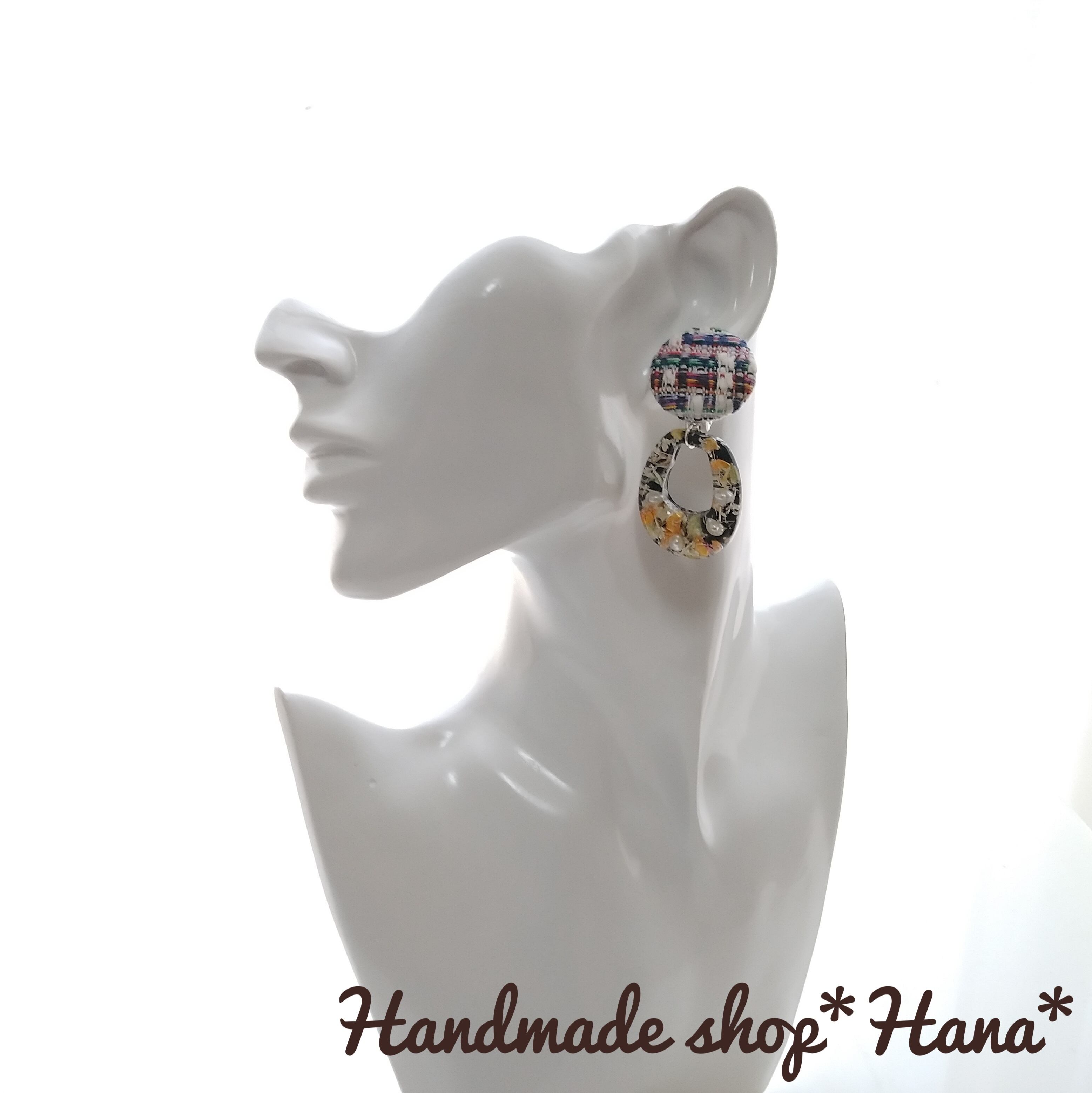 ツイードと、ドライフラワーをたっぷり使ったオシャレなイヤリングです♡