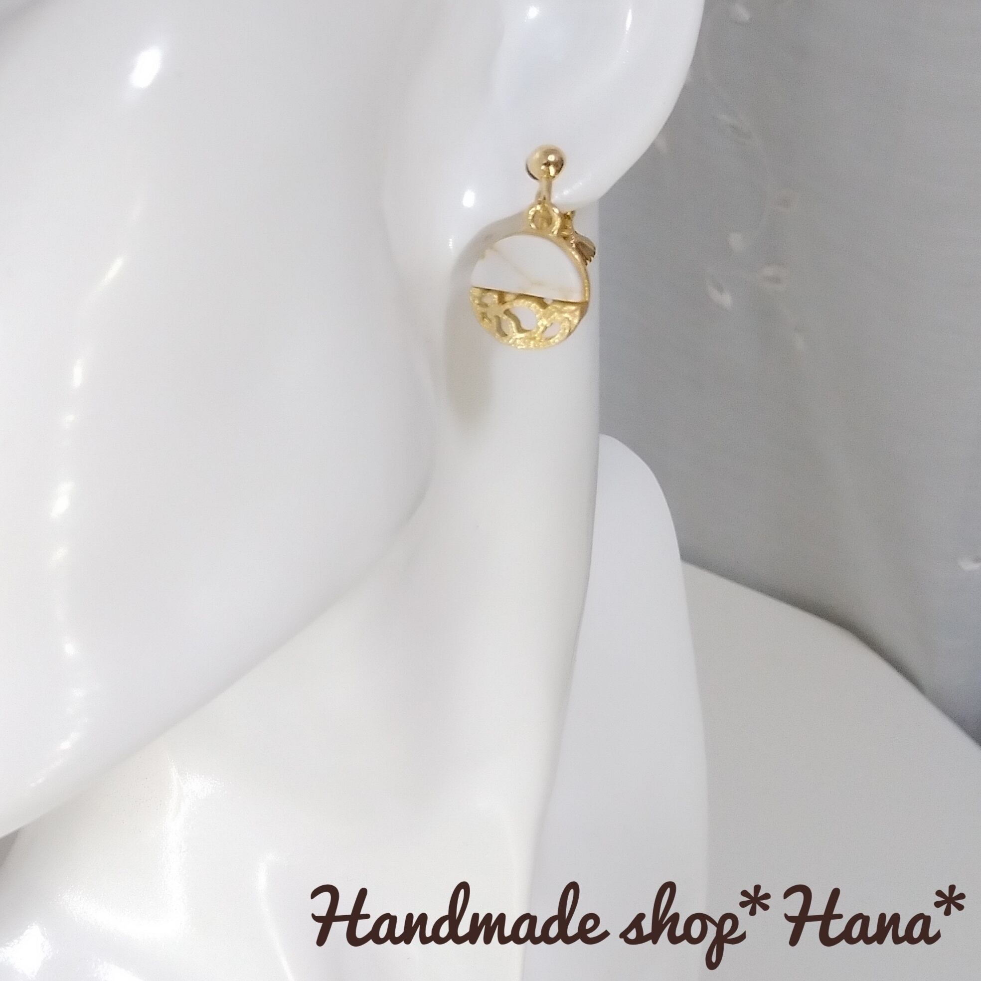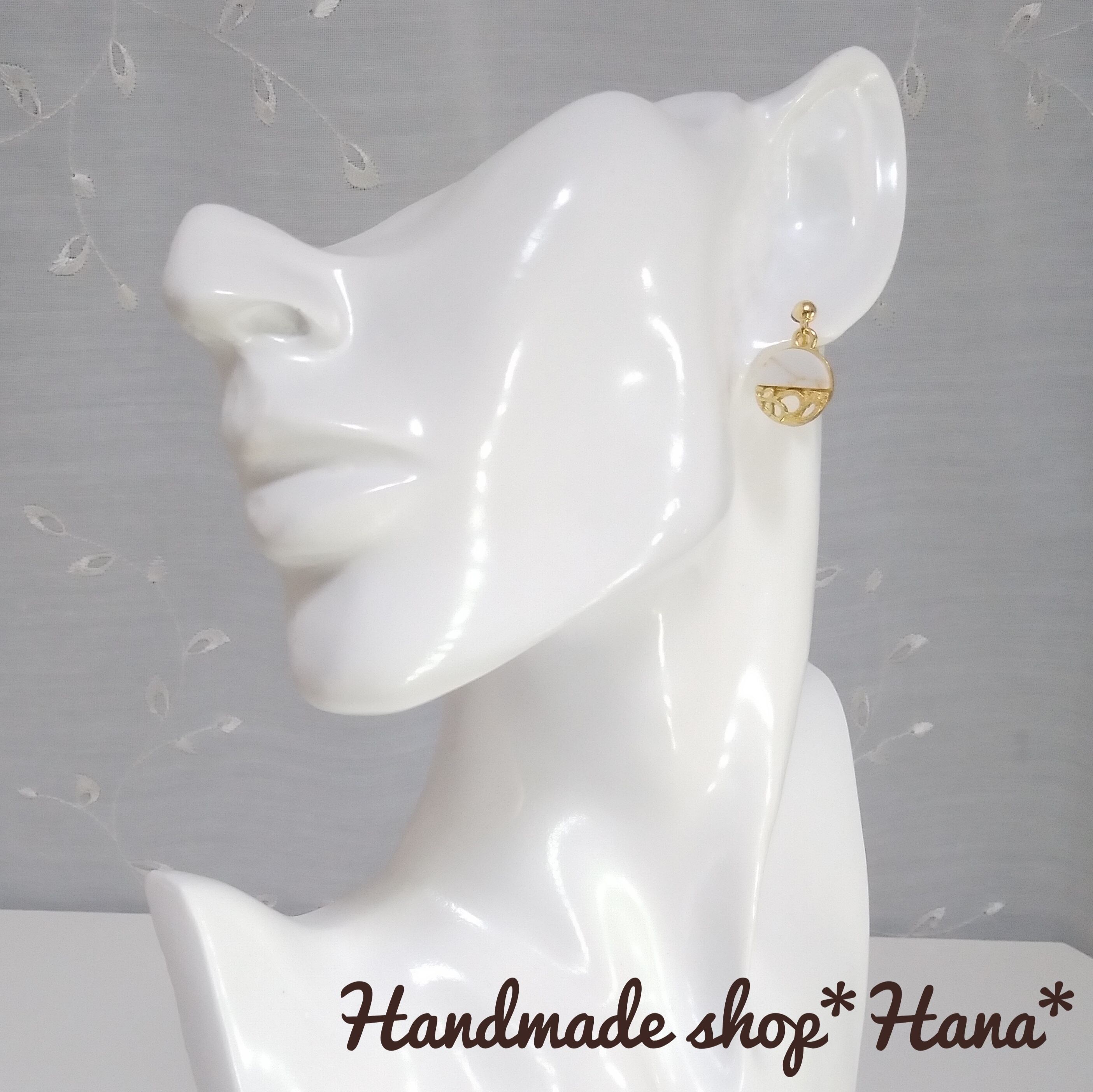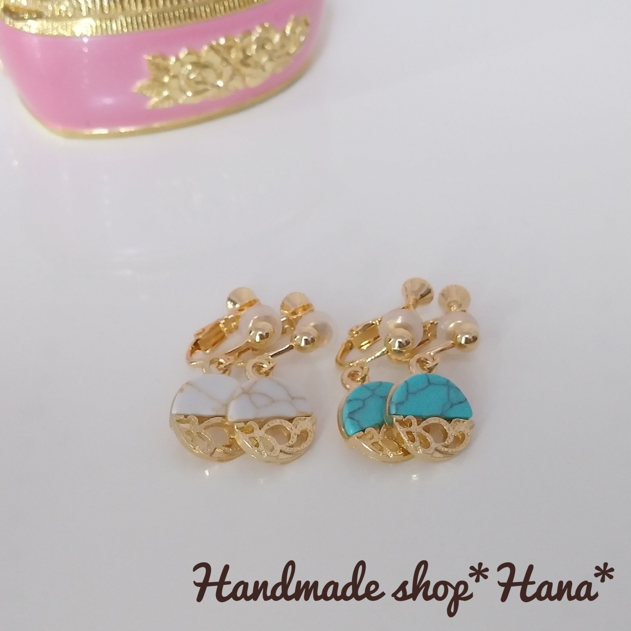 半円のターコイズと波のモチーフで海をイメージしたイヤリングです。