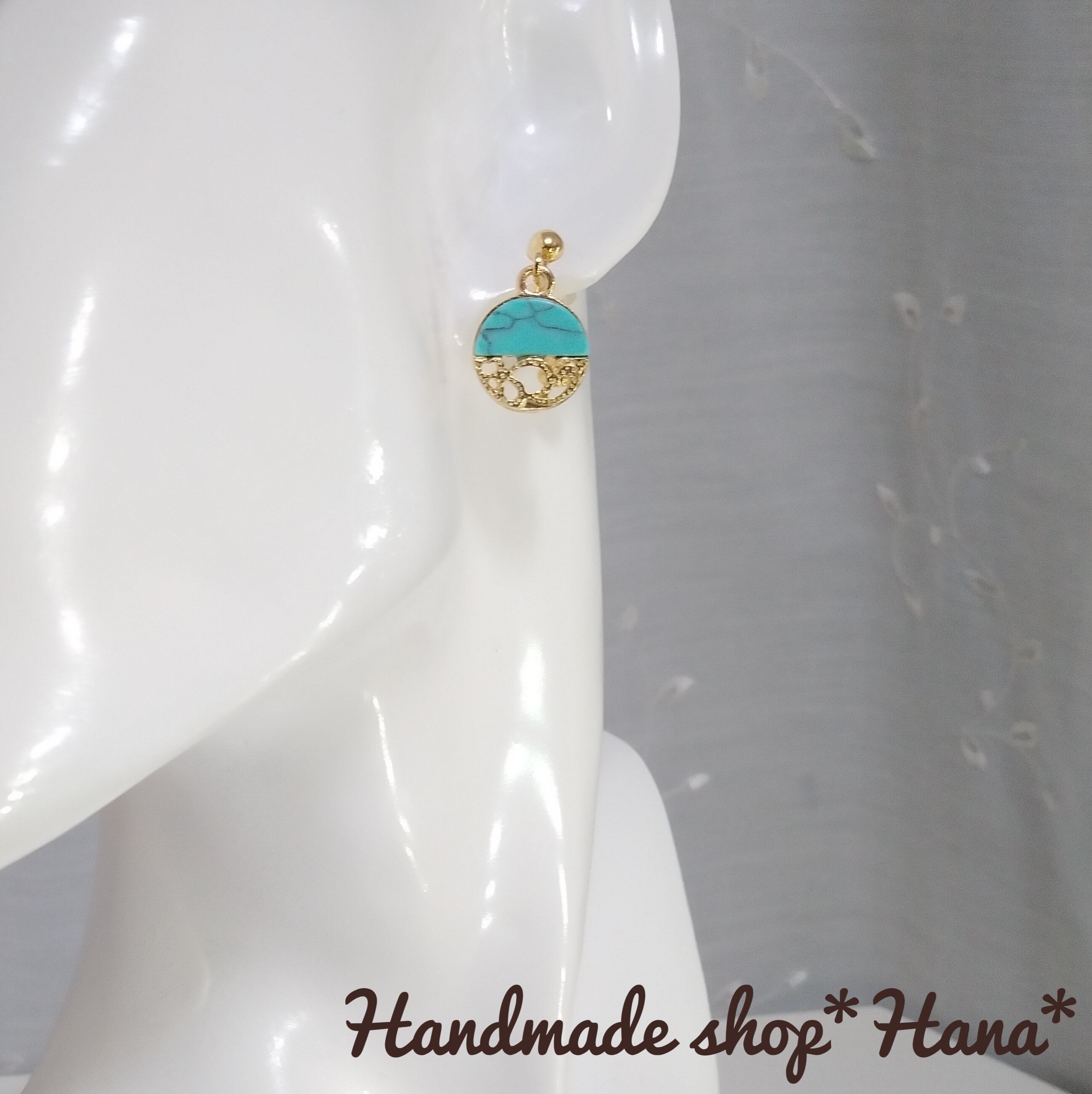半円のターコイズと波のモチーフで海をイメージしたイヤリングです。