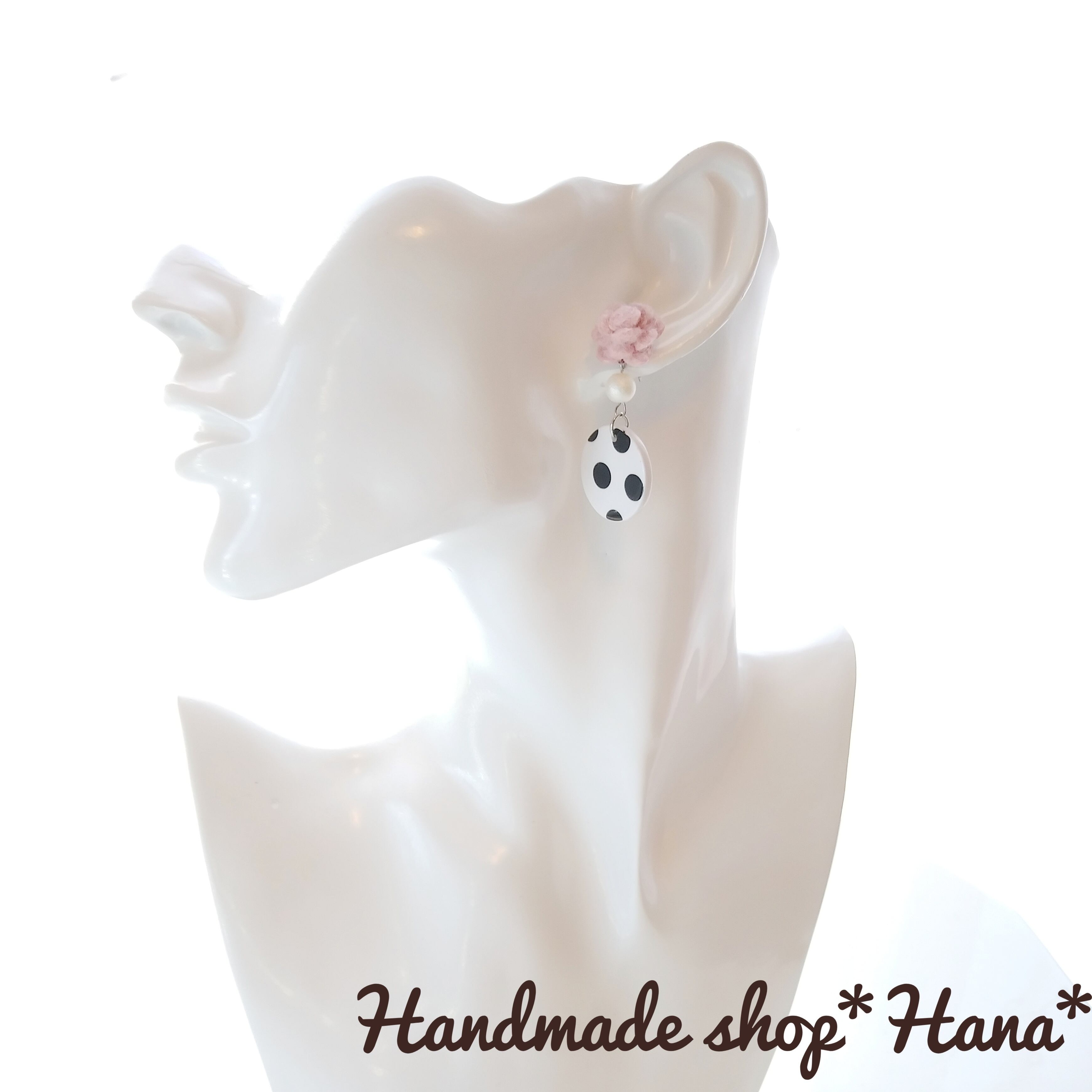 【金属アレルギー対応】水玉×お花のピアス(ライトピンク)