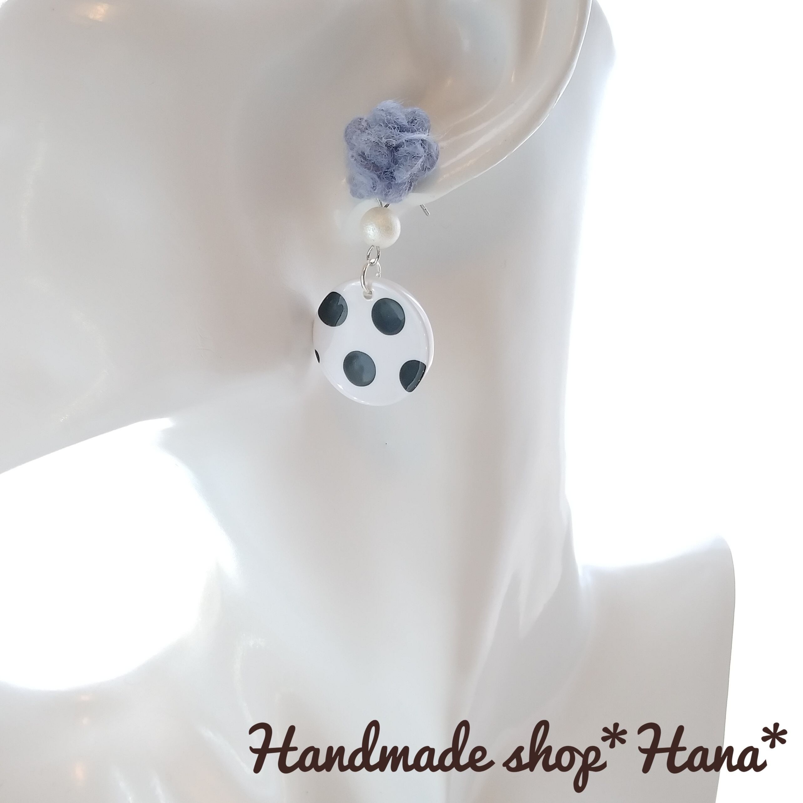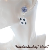 【金属アレルギー対応】水玉×お花のピアス(ブルー)