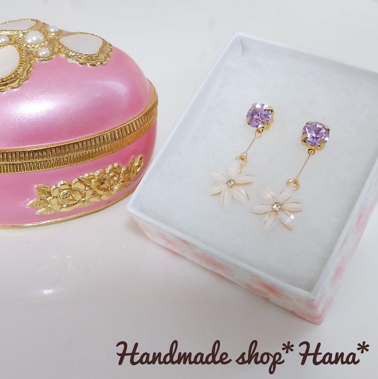 お花が風に揺れてるのをイメージして作りました。着けていただくとチラチラ揺れてとっても可愛らしい雰囲気の小ぶりなピアスです。
