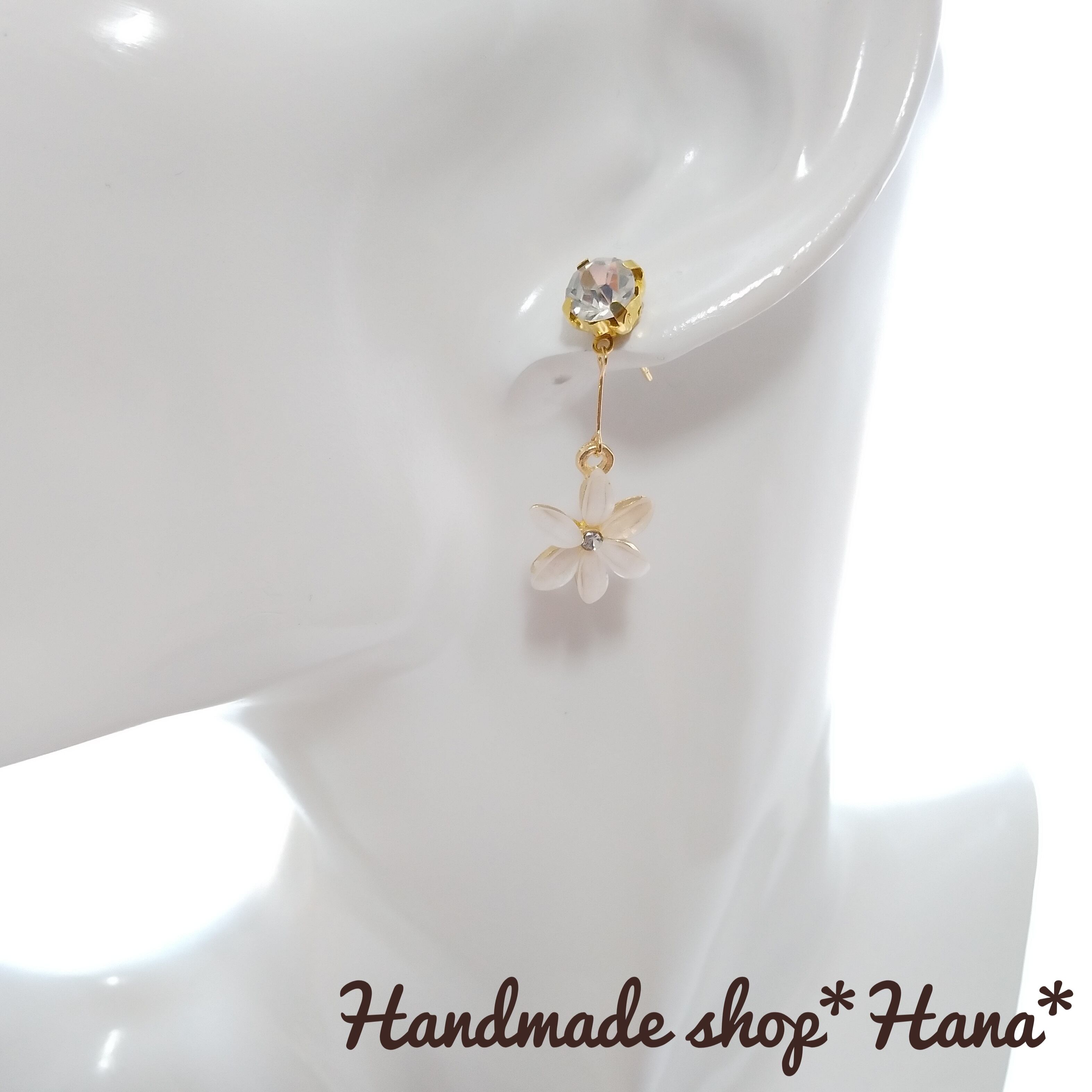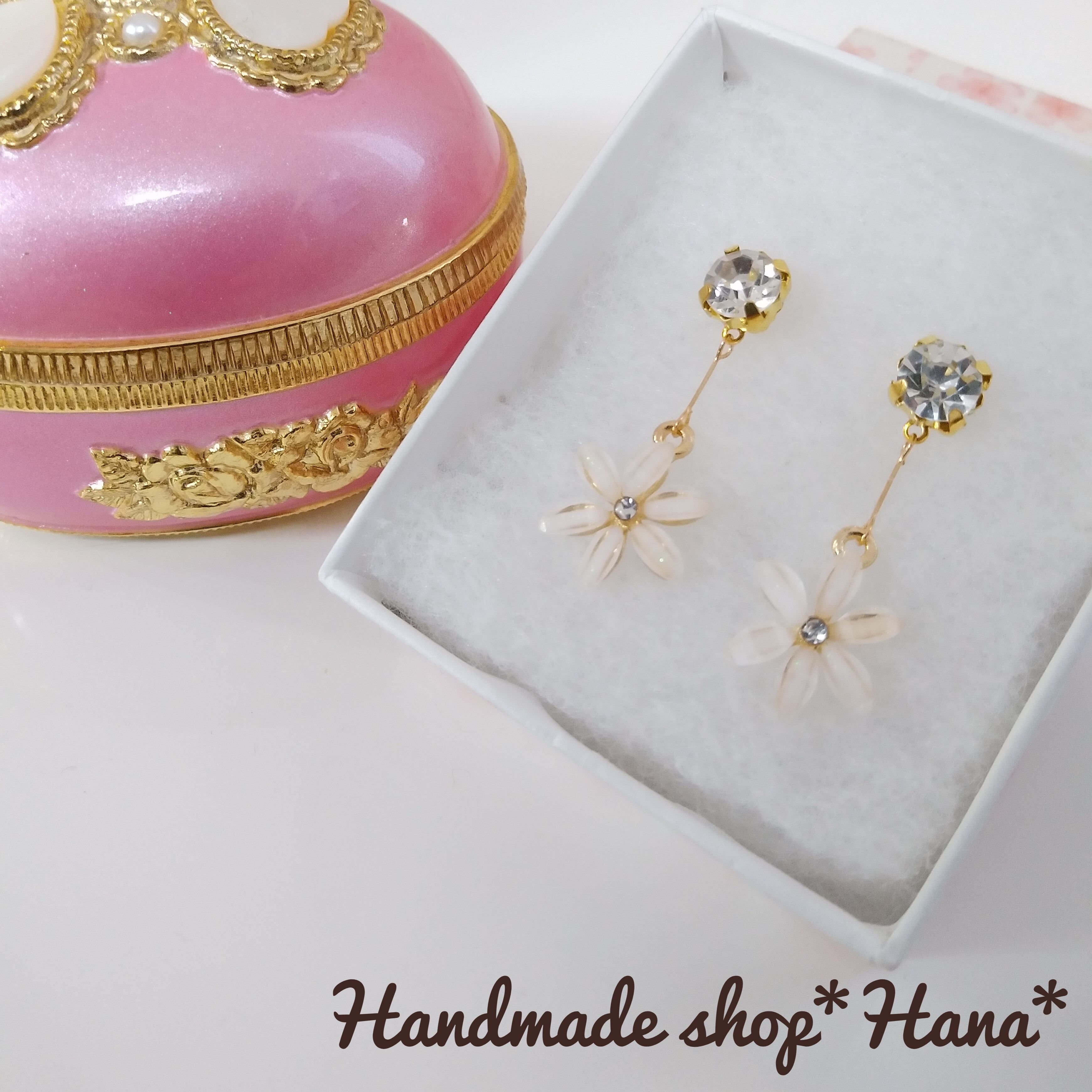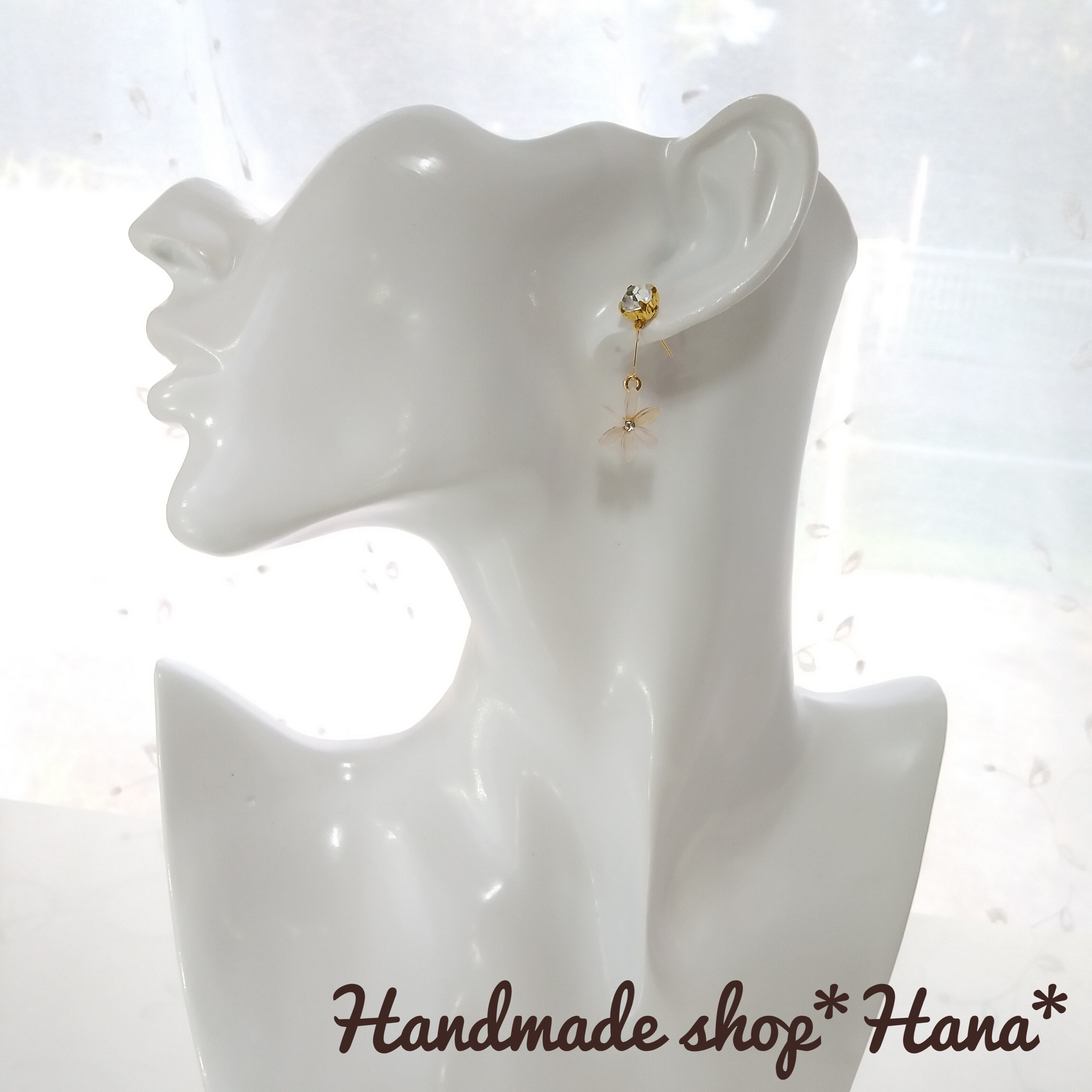 お花が風に揺れてるのをイメージして作りました。着けていただくとチラチラ揺れてとっても可愛らしい雰囲気の小ぶりなピアスです。