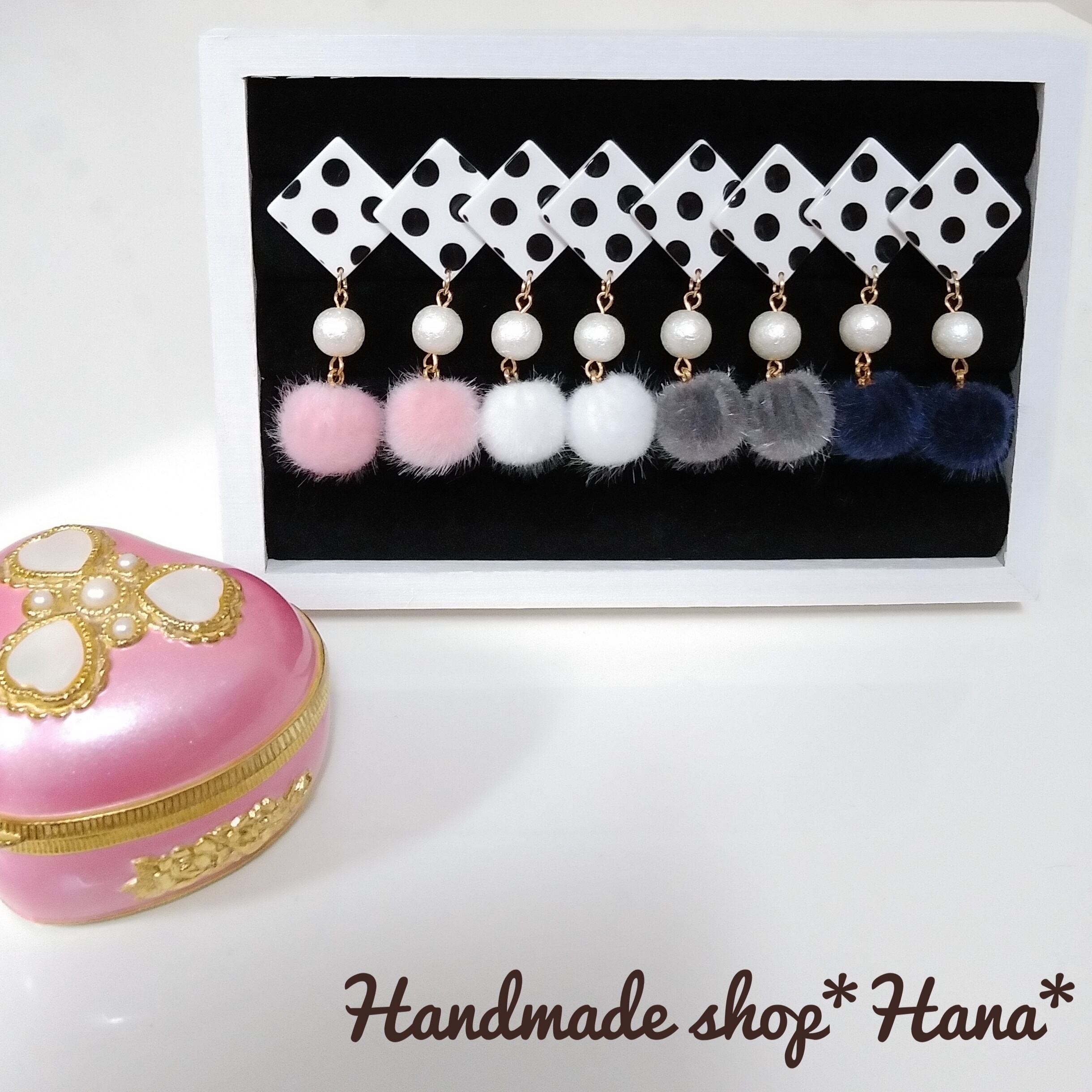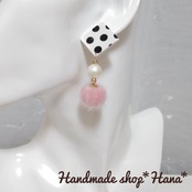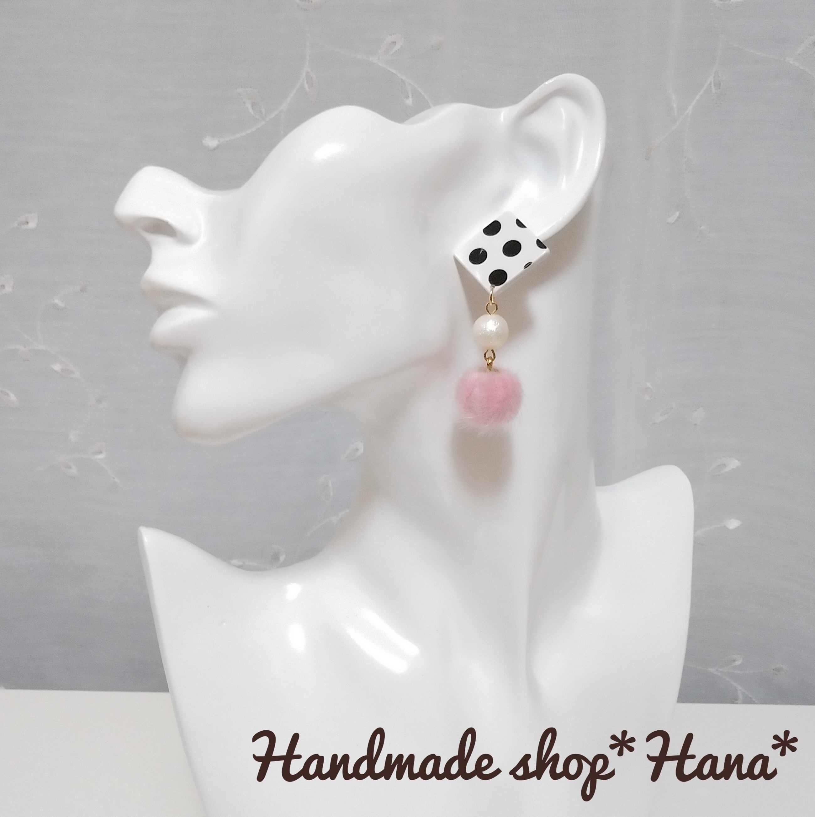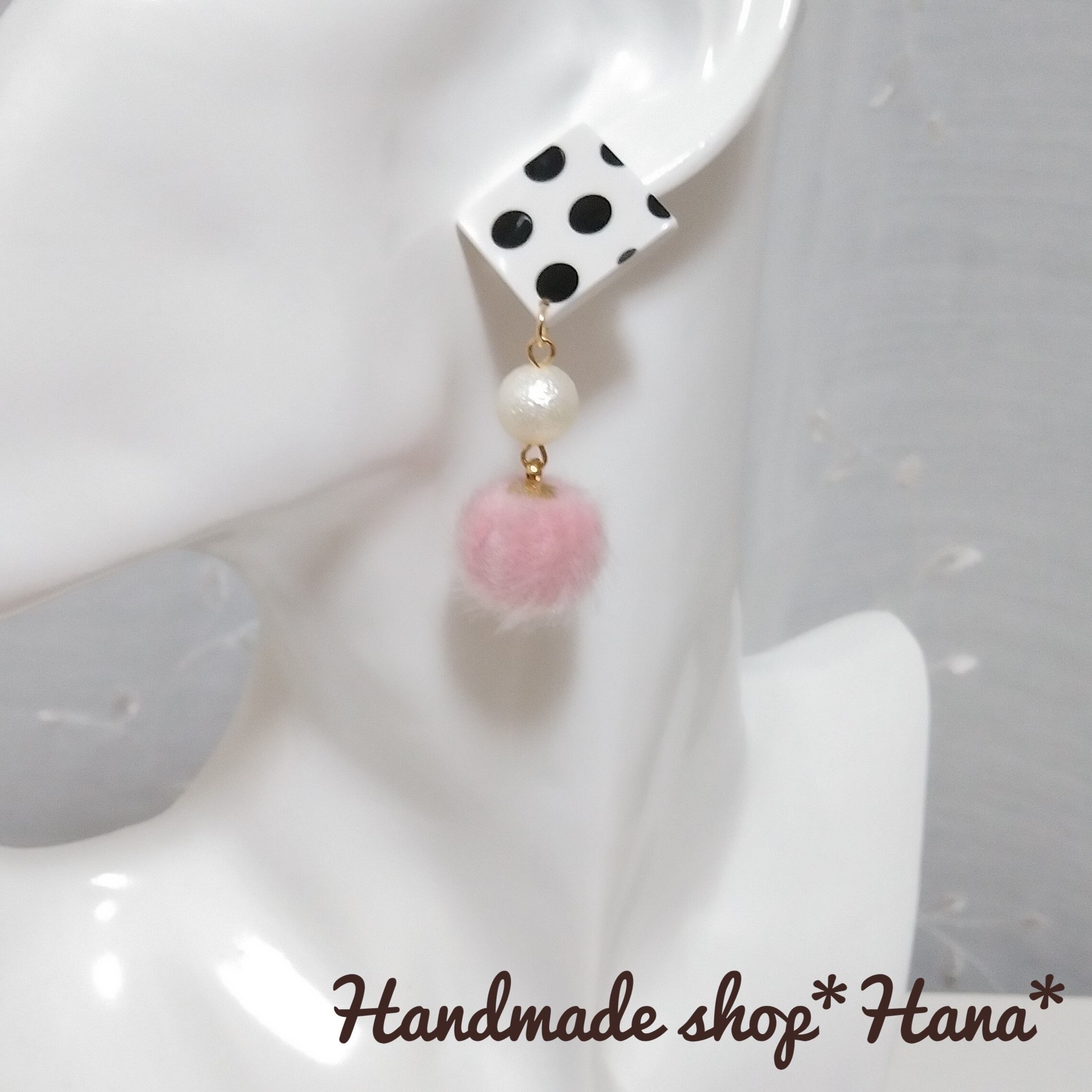 水玉とシュガーパール、ファーの相性が抜群にいい大ぶりのピアスです!