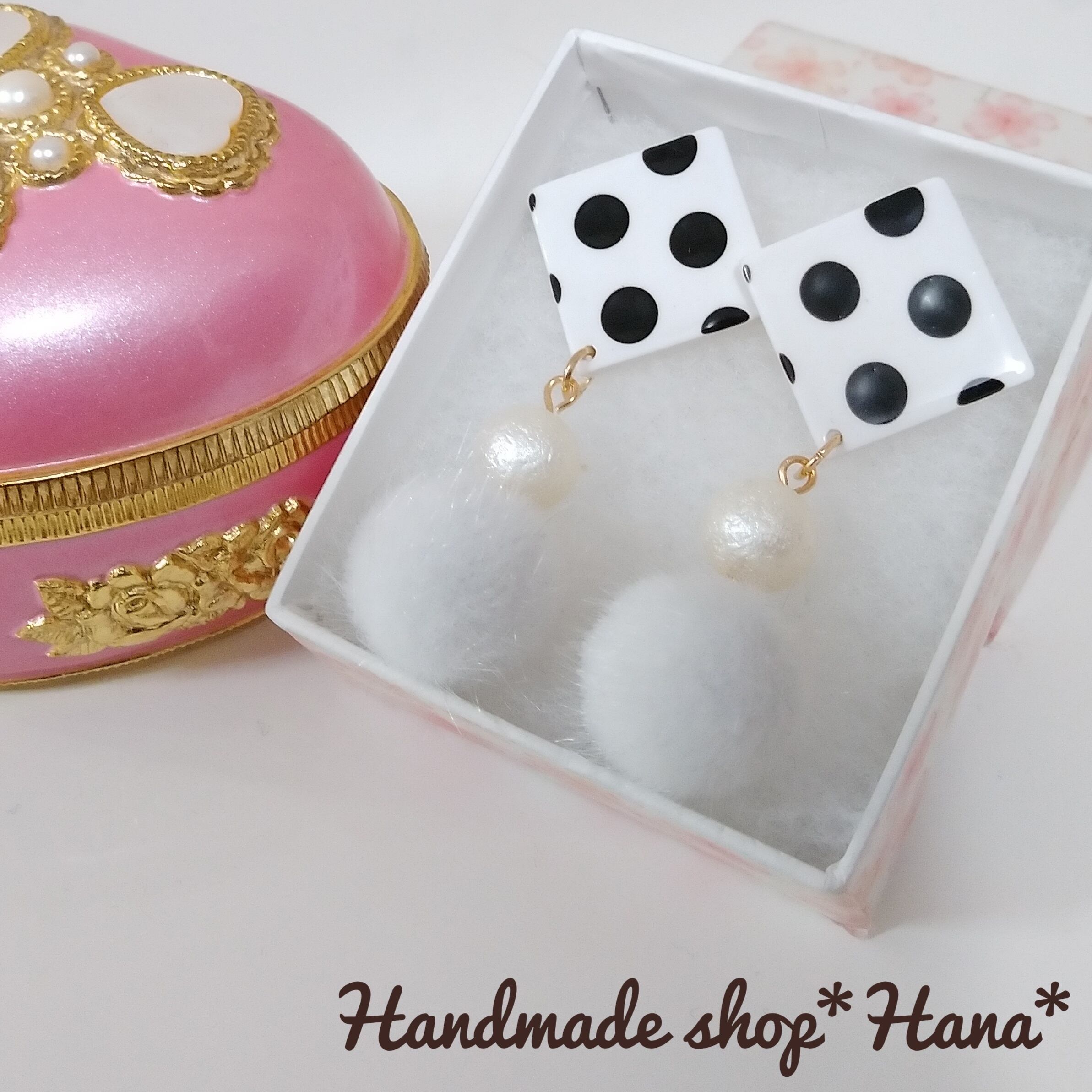 水玉とシュガーパール、ファーの相性が抜群にいい大ぶりのピアスです!