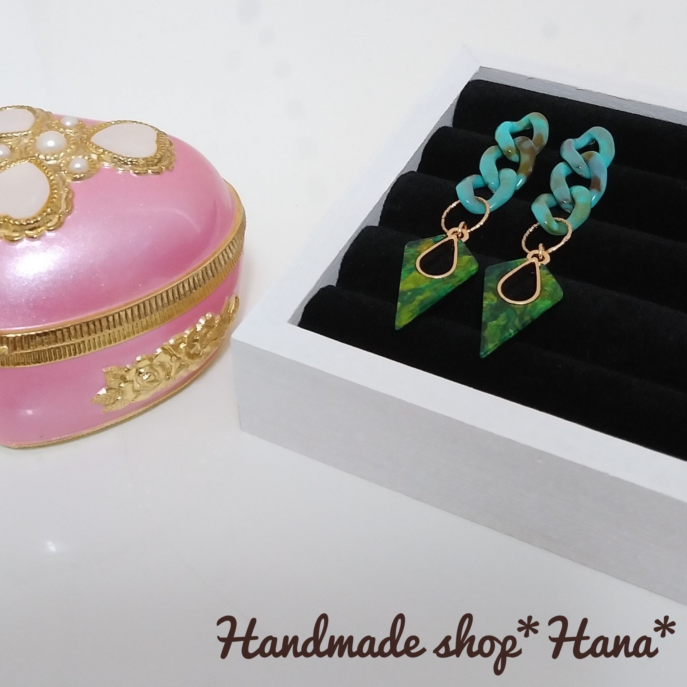 アクリルチェーンのアンティーク風ピアス(ターコイズブルー)