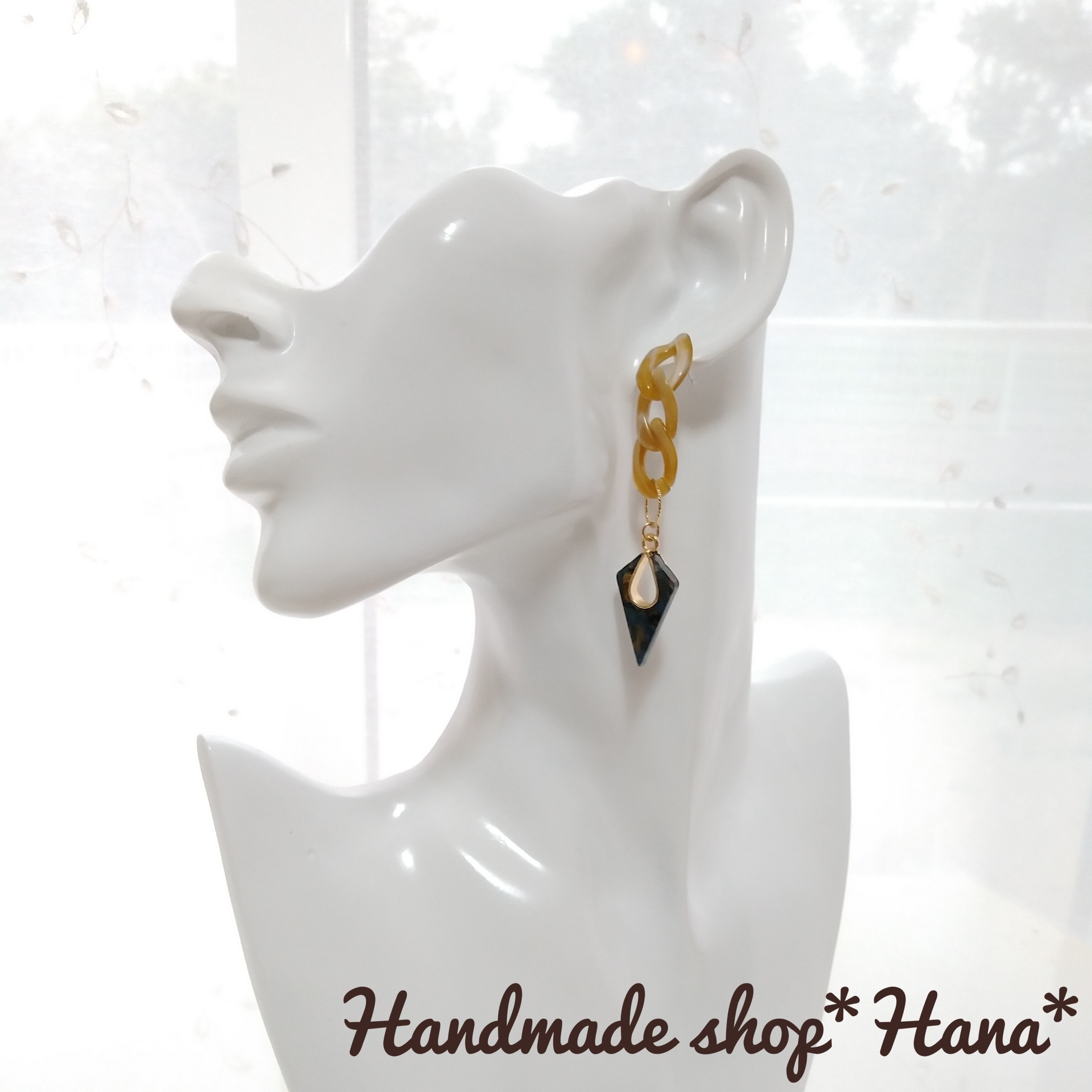 トレンドを意識したアクリルチェーンのオシャレなアンティーク風の大ぶりピアスです!