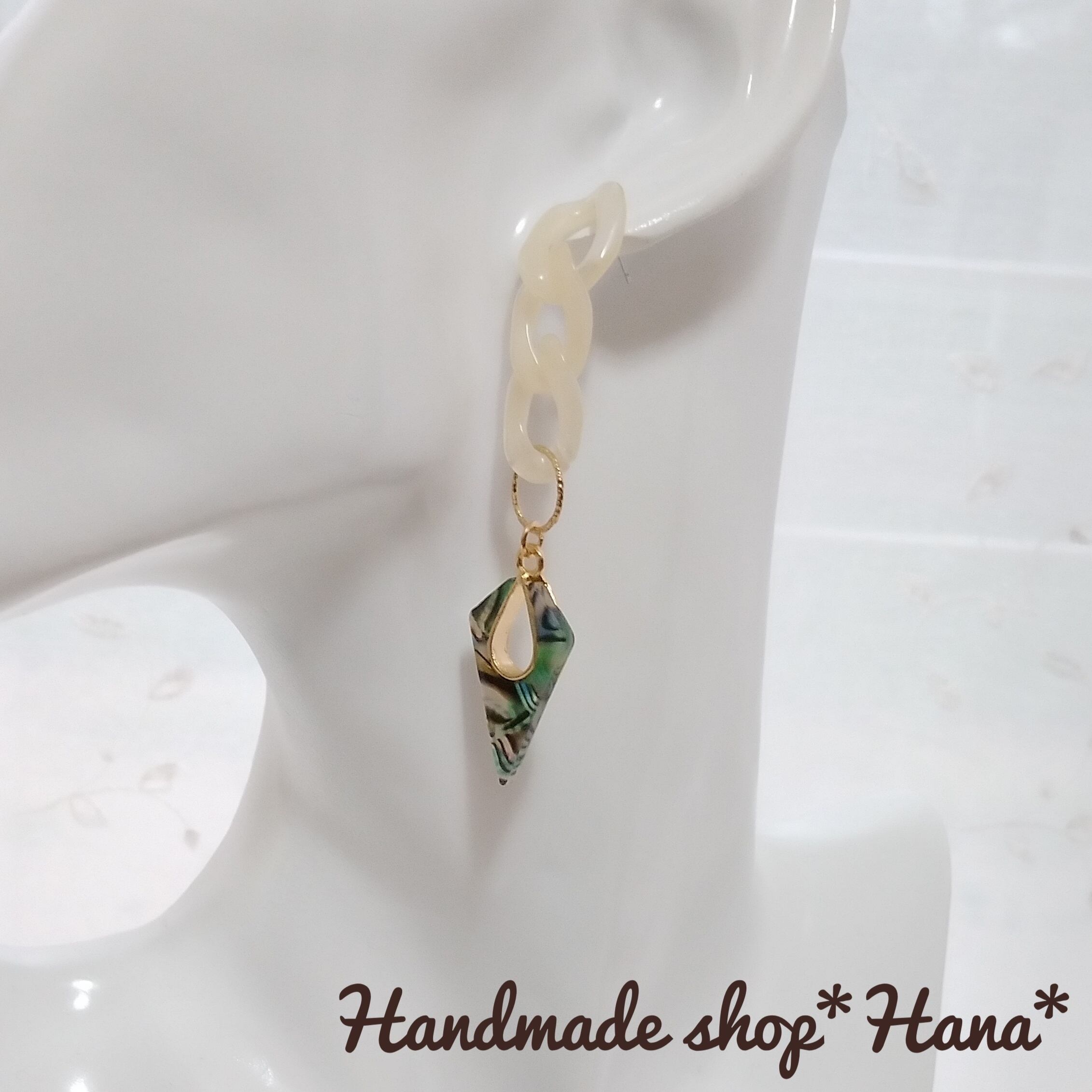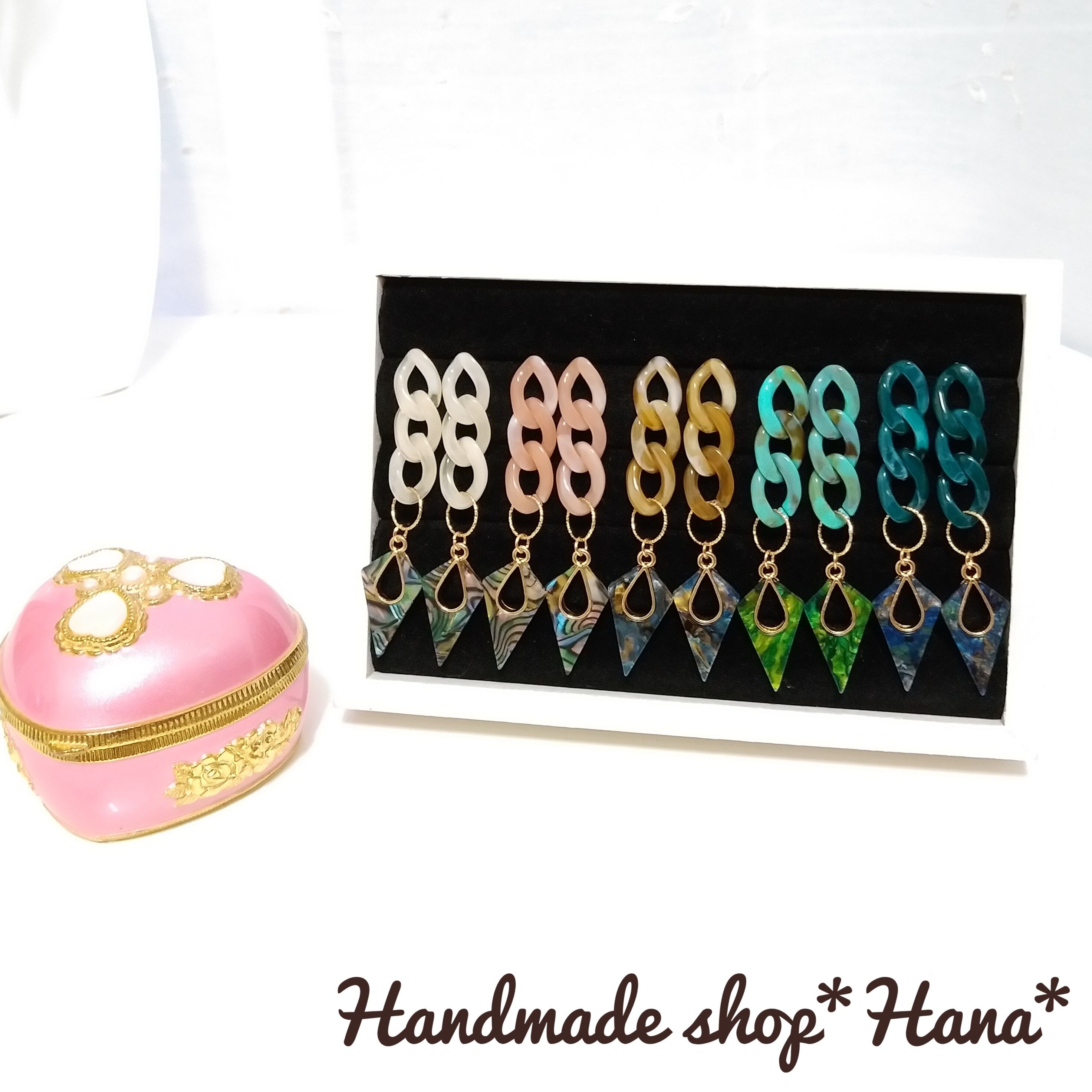 トレンドを意識したアクリルチェーンのオシャレなアンティーク風の大ぶりピアスです!