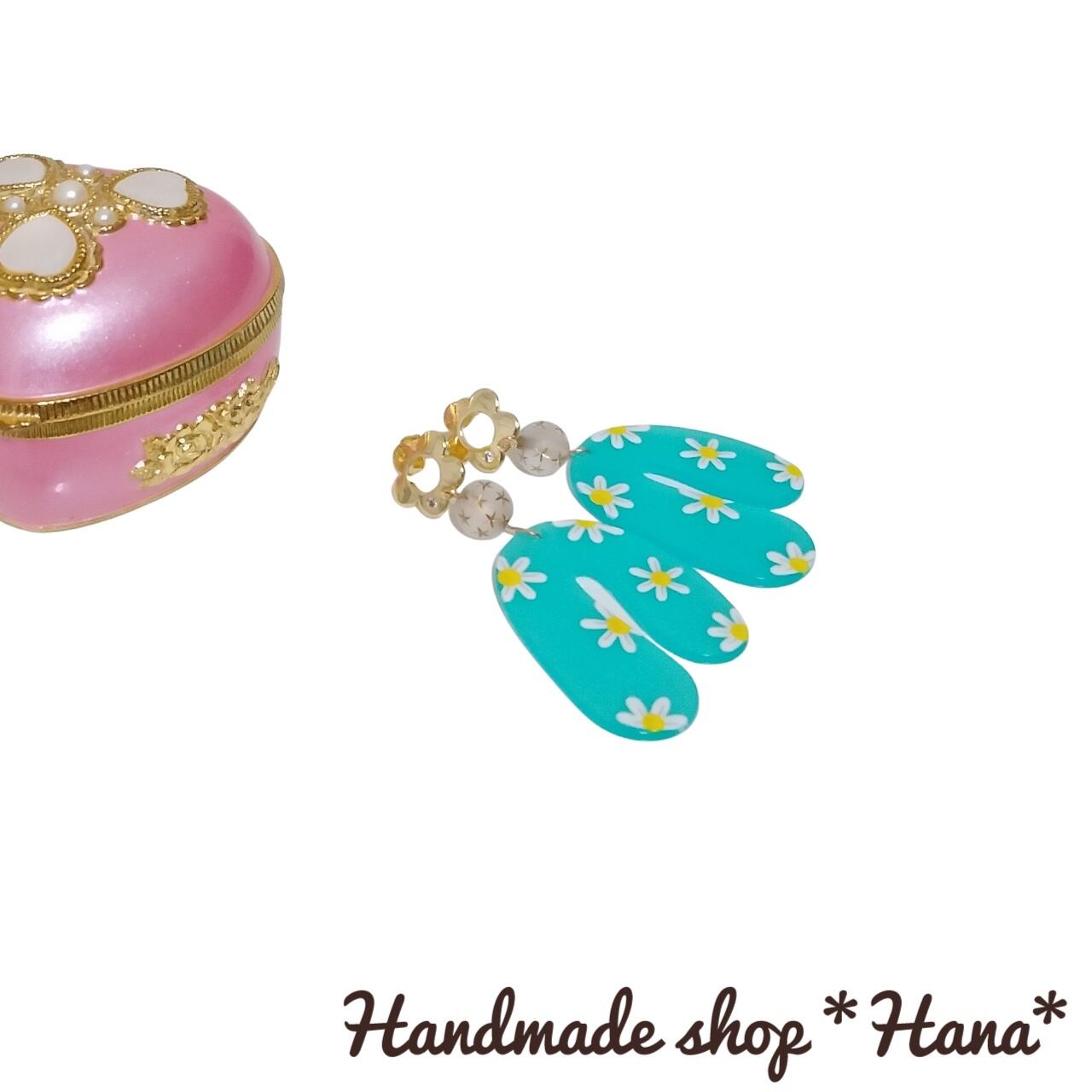 柄はさくらんぼ、マーガレット、みかんの三種類ご用意致しました!大ぶりの可愛いピアスです(*^^*)